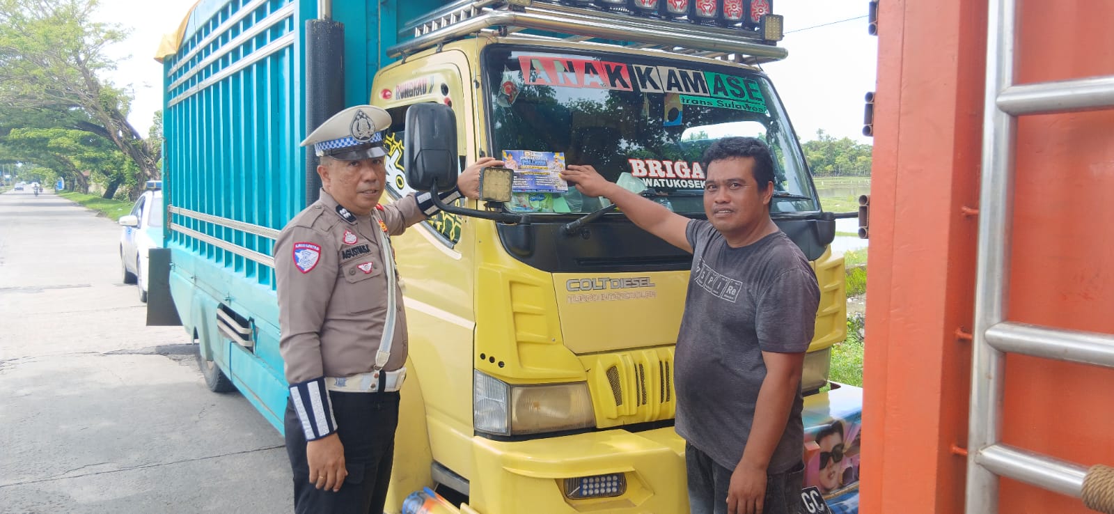 Selain itu, personel Sat Lantas turut memberikan penyuluhan kepada para sopir truk terkait larangan ODOL (Over Dimension Over Loading) guna mencegah potensi kecelakaan serta menjaga kelancaran arus kendaraan berat.
