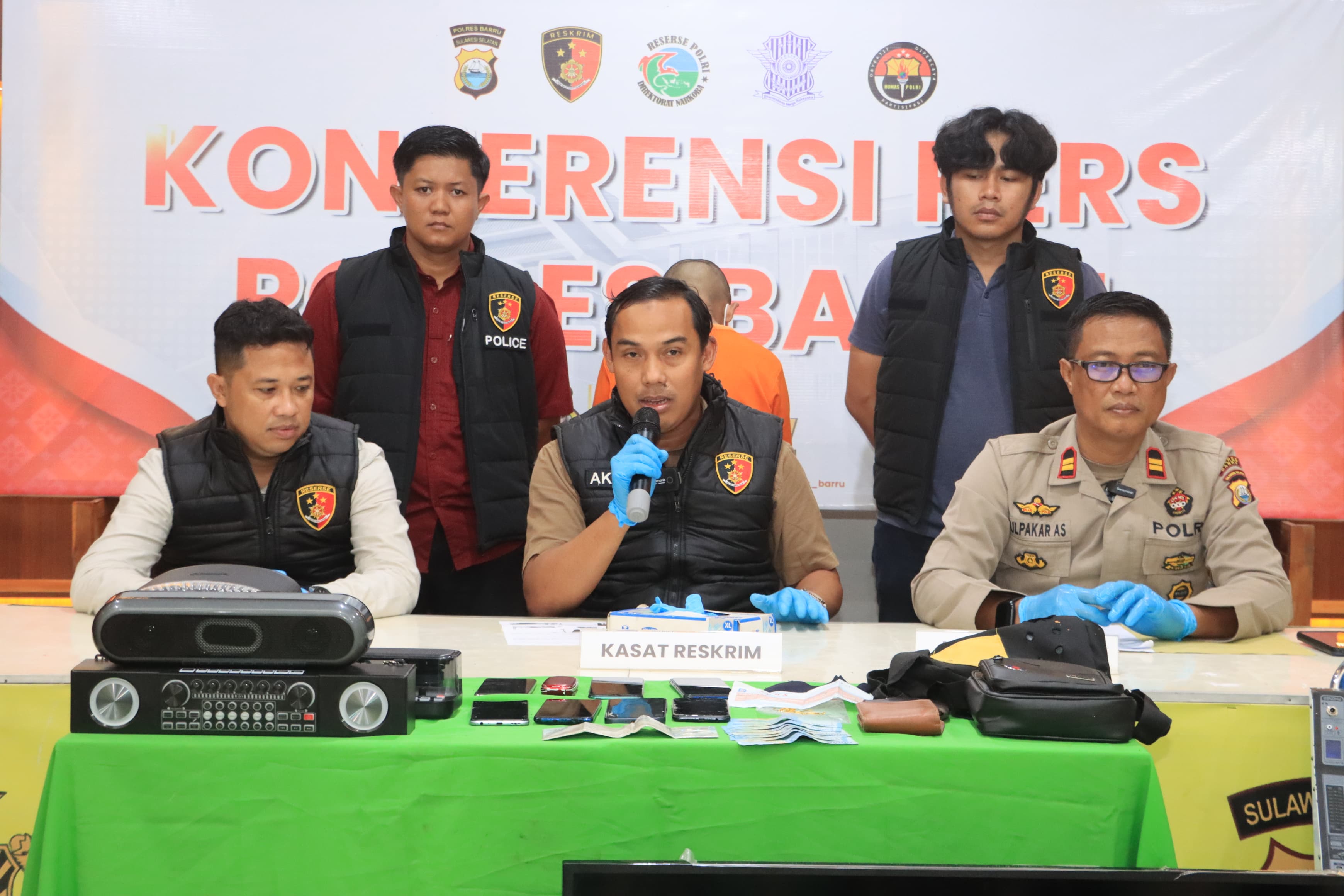Kasat Reskrim Polres Barru, Iptu Akbar Sirajuddin, menyampaikan saat Press Release di dampingi Kasi Humas Polres Barru, Iptu Sulpakar, di Gedung Polres Barru, Sulawesi Selatan bahwa terduga pelaku di amankan setelah
