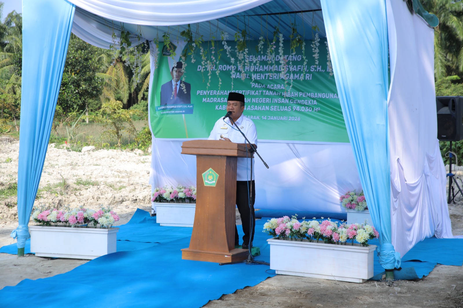 ASAHAN – Rabu (14/1/2026), Pemerintah Kabupaten Asahan secara resmi menyerahkan sertifikat tanah hibah seluas 94.030 meter persegi untuk pembangunan Madrasah Aliyah Negeri (MAN) Insan Cendekia Kabupaten Asahan. Penyerahan dilakukan di Jalan Budi Utomo, Kelurahan Mutiara, Kecamatan Kota Kisaran Timur, di atas lahan eks BSP, sebagai wujud komitmen Pemerintah Kabupaten Asahan dalam mendukung penguatan pendidikan menengah unggulan berbasis keislaman.