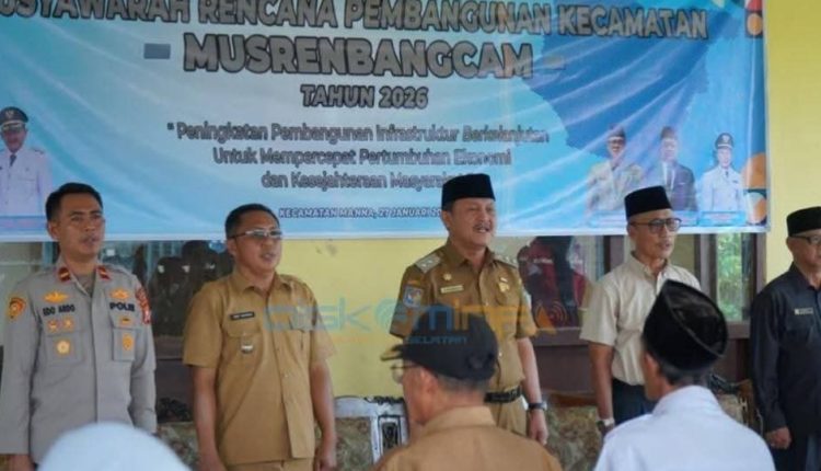 BENGKULU SELATAN – Wakil Bupati Bengkulu Selatan, Yevri Sudianto, menghadiri kegiatan Musyawarah Perencanaan Pembangunan (Musrenbang) Kecamatan Manna, yang digelar di halaman Kantor Camat Manna, Selasa (27/01/2026).