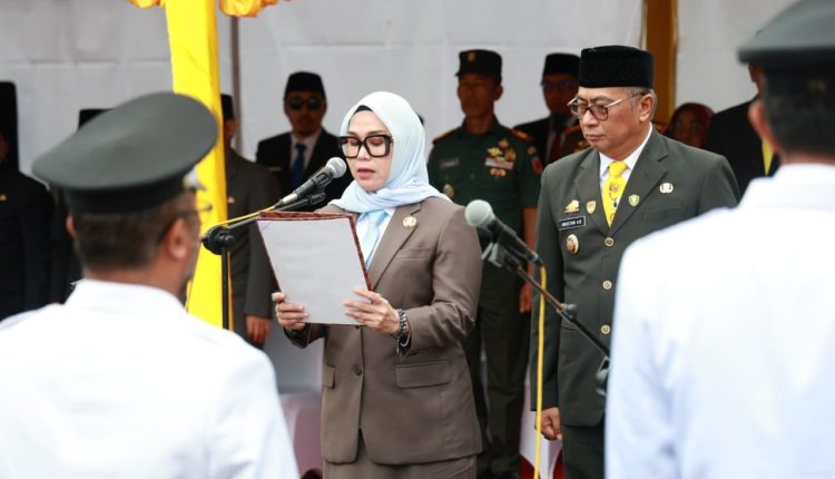 Barru – Bupati Barru, Andi Ina Kartika Sari, melantik dan mengambil sumpah jabatan Pejabat Pimpinan Tinggi Pratama, Administrator, Pengawas, dan Fungsional di lingkungan Pemerintah Kabupaten Barru yang dipusatkan di Alun-Alun Colliq Pujie, Kabupaten Barru, Sulawesi Selatan, Sabtu sore (14/02/2026).