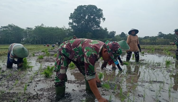 Satgas TMMD Ke-127 Bersama Warga Wonosari Tanam Padi, Perkuat Ketahanan Pangan