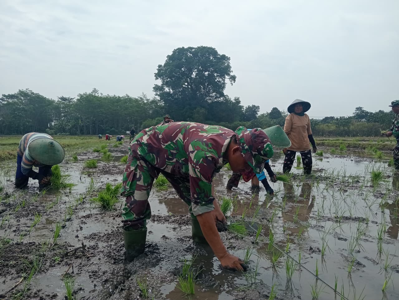 Kegiatan tersebut berlangsung penuh semangat dan kebersamaan.Prajurit TNI dan warga tampak bergotong royong menanam bibit padi di area persawahan sebagai bentuk sinergi nyata dalam meningkatkan produktivitas pertanian desa.