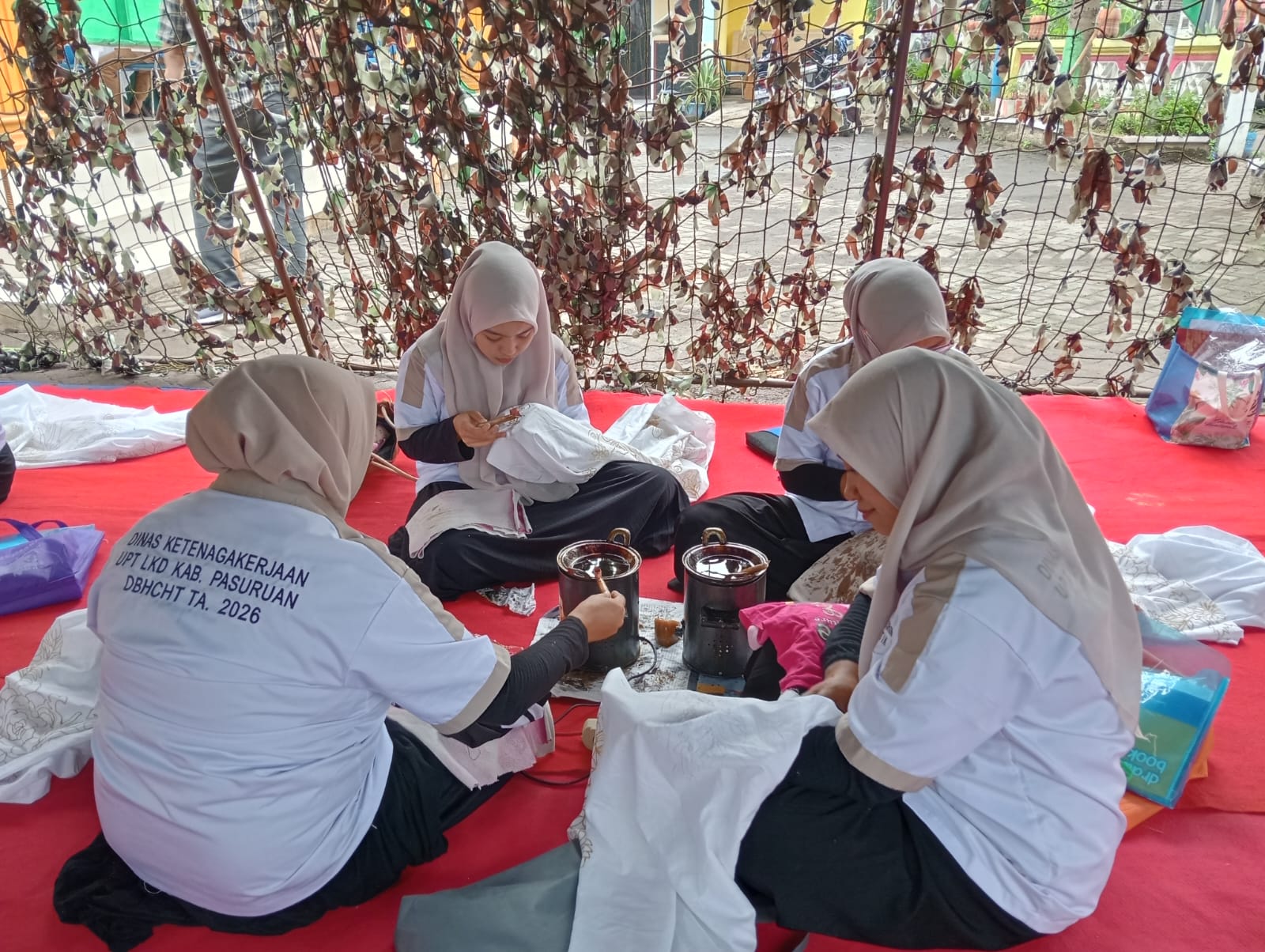 Puluhan ibu-ibu PKK duduk bersila sambil memegang canting, tekun menorehkan malam panas di atas kain mori. Aroma khas lilin batik pun semerbak, menambah semangat para peserta mengikuti pelatihan.