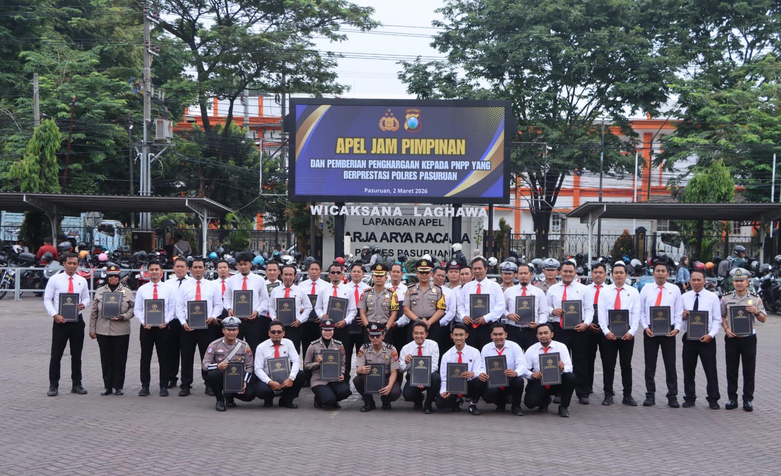PASURUAN – JATIM || Polres Pasuruan menggelar Apel Pagi Jam Pimpinan yang dirangkaikan dengan pemberian penghargaan kepada Pegawai Negeri pada Polri (PNPP) berprestasi, Senin (2/3/2026) pukul 08.00 hingga 08.50 WIB.