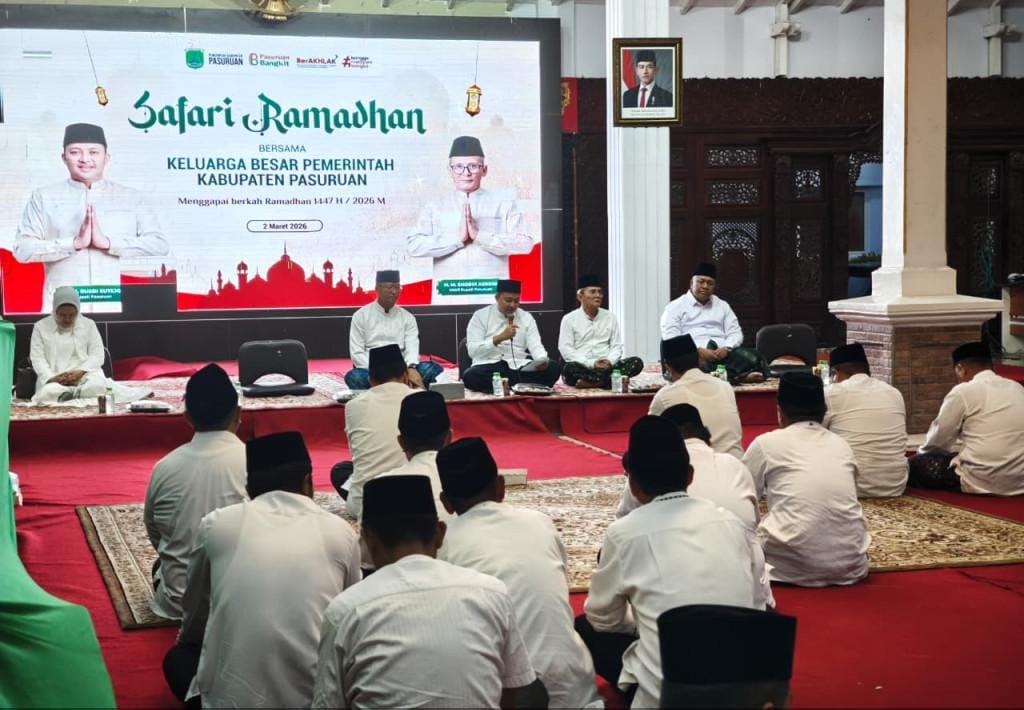 PASURUAN – JATIM || Pemkab sebelumnya menggelar Safari Ramadhan bersama Forkopimda dan para ulama, Bupati Pasuruan, Rusdi Sutejo kembali melanjutkan kegiatan serupa dengan mengajak seluruh Aparatur Sipil Negara (ASN) di lingkungan Pemerintah Kabupaten Pasuruan untuk hadir dalam Safari Ramadhan 1447 Hijriyah, Senin (2/3/2026) sore.