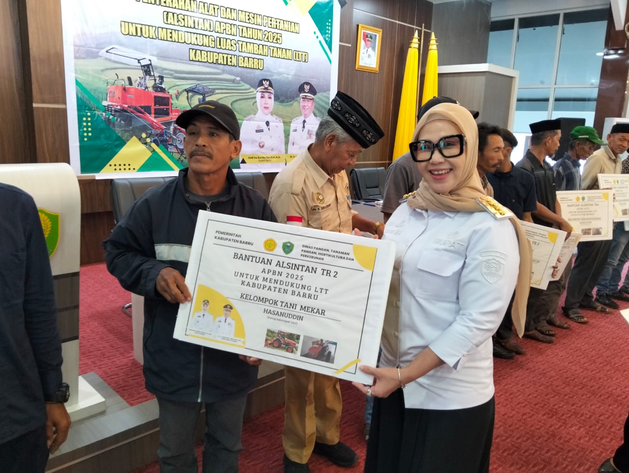 Barru –Bupati Barru Andi Ina Kartika Sari, menyerahkan bantuan Alat dan Mesin Pertanian (Alsintan) yang bersumber dari APBN Tahun 2025 guna mendukung program Luas Tambah Tanam (LTT) di Kabupaten Barru, Sulawesi Selatan. Penyerahan berlangsung di Baruga Singkeru Adae, Kabupaten Barru, Rabu (04/03/2026).