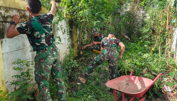 Dengan penuh semangat kebersamaan, personel Satgas TMMD bahu-membahu membersihkan sampah, memangkas rumput liar, serta merapikan area sekitar sekolah agar terlihat lebih bersih, rapi, dan sehat.