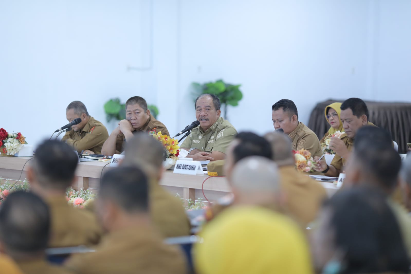ASAHAN – Bupati Asahan Taufik Zainal Abidin Siregar membuka Rakor Pemerintah (Rakorpem) bulan Maret 2026 di Aula Melati Kantor Bupati Asahan, Senin (9/3/2026). Kegiatan ini dihadiri Wakil Bupati Asahan Rianto, Sekda Zainal Aripin Sinaga, dan pejabat lainnya.