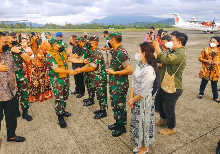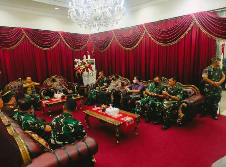 BOLTIM- Bupati Bolaang Mongondow Timur (Boltim) Sam Sachrul Mamonto menyambut kedatangan Kepala Staf Angkatan Darat (KASAD), Jenderal TNI Dudung Abdurachman, di Wisma Negara Bumi Beringin Manado, Minggu (10/4).