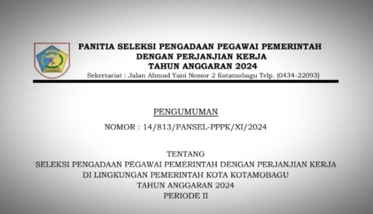 Hal ini berdasarkan pengumuman Panitia Seleksi Pengadaan PPPK nomor: 14/813/PANSEL-PPPK/XI/2024 yang ditandatangani Sekretaris Daerah Kotamobagu, Sofyan Mokoginta, selaku Ketua Pansel PPPK tertanggal 18 November 2024.